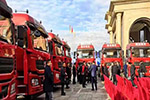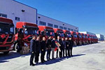 新疆烏拉白兵團國際物流園內,30臺匹配東風康明斯ISL9 5發動機的東風TF36集體交付用戶,交車儀式簡樸而莊重。