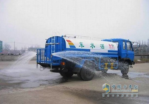 灑水車貯水箱設有排污管,該管的進口為水箱的最低點。經過一段時間的使用,應定期打開排污管開關,將罐內積存的雜物排除,直到水變清為止。
