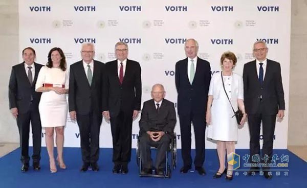 聯(lián)邦財政部部長沃爾夫?qū)?middot;朔伊布勒(Wolfgang Schäuble)博士、巴登--符騰堡州州長溫弗里德·克瑞特許曼(Winfried Kretschmann)、30位家族企業(yè)股東,以及國際客戶與福伊特員工共同為福伊特150周年慶祝。