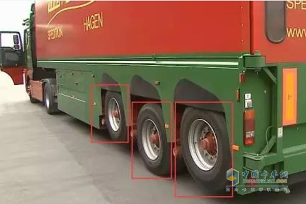 在工人的操作下,掛車部分的前后兩側(cè)輪胎慢慢降下,廂式車底部箱板慢慢下降直到完全著地。