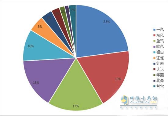 2017年1-8月主要重卡品牌銷量占比