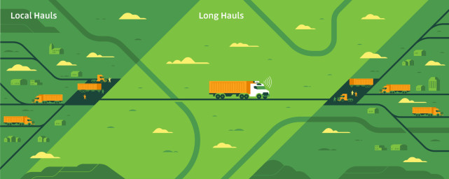 卡車司機將把貨物從倉庫和工廠運到高速公路附近的轉運中心。為高速公路設計的自動駕駛卡車將會接收這些貨物,將其送往另一個轉運中心。最終,人工司機將負責把貨物送到目的地。