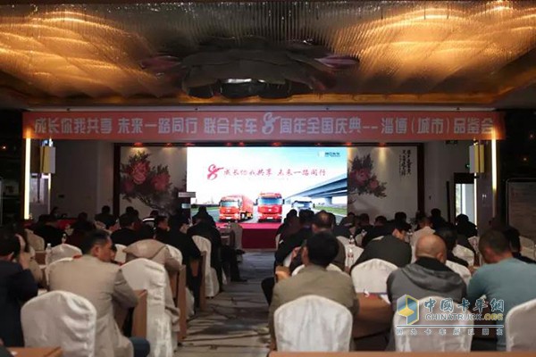 2017年11月8日,由聯合卡車主辦的以“成長你我共享 未來一路同行”為主題的八周年慶典品鑒會在山東淄博如期舉行。聯合卡車營銷公司山東大區經理劉國筍、淄博鼎盛營銷服務有限公司總經理王錫忠及新老用戶150余人參加會議,現場展出了聯合卡車U系多種車型和最新的E系車。