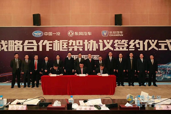 2017年12月1日,中國第一汽車集團公司(以下簡稱“中國一汽”)、東風汽車集團有限公司(以下簡稱“東風汽車”)、重慶長安汽車股份有限公司(以下簡稱“長安汽車”)戰略合作框架協議簽約儀式在湖北武漢舉行。