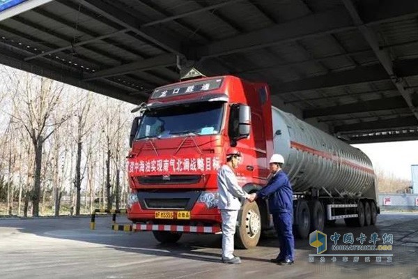 2017年12月9日18時30分,中國海油“南氣北運”的第一車LNG(液化天然氣)運抵華北地區。