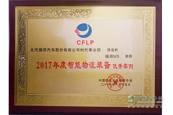 2017年6月,福田時代M3被中國物流和采購聯合會授予“2017年度智能物流裝備”大獎;2017年12月,在由中國物流與采購聯合會等單位舉辦的中國物流發展大會上被評價為“中國物流推薦用車”;福田時代M3上市短短半年,獲得了客戶、媒體、行業的高度認可。