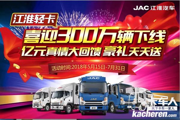 江淮輕卡喜迎300萬輛下線 億元真情大回饋 豪禮天天送