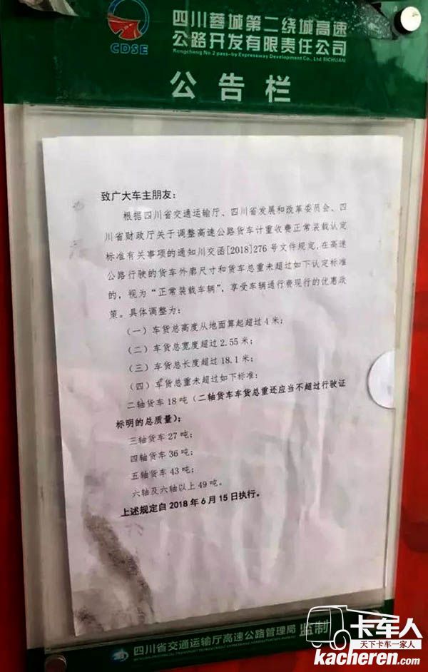 下面是一位開4米2貨車的卡友發(fā)到后臺的。他在下高速的時候,收費站的人員問他:師傅您是否經常在我們四川跑啊? 他回答:是的。她說你看看這個文件,以后要是超出行駛證荷載的總質量就不讓上高速了。聽完我覺得心里酸酸的。