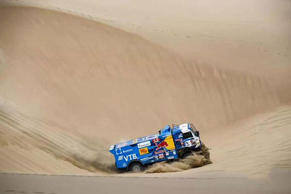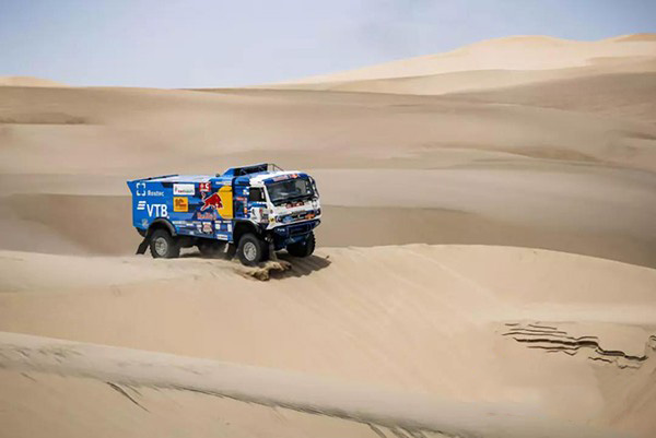 東風(fēng)康明斯ISZ發(fā)動(dòng)機(jī)在該高海拔沙漠賽段依然表現(xiàn)搶眼,衛(wèi)冕冠軍E.Nikolaev繼續(xù)駕駛著500號賽車領(lǐng)跑整個(gè)卡車組,在沙漠路段展現(xiàn)了非凡的動(dòng)力。