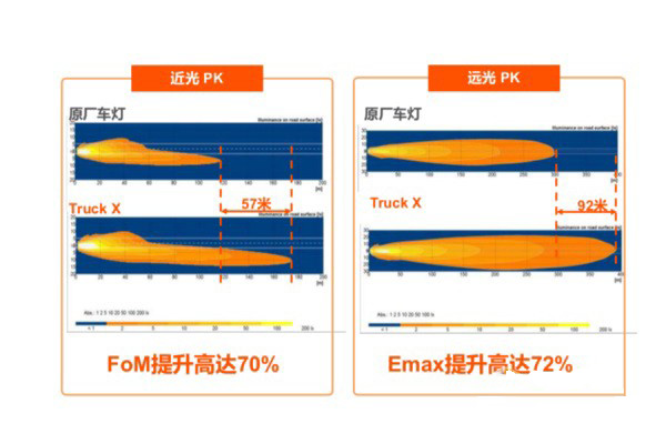 卡車司機在高速公路夜間行車非常普遍,但由于夜間的視野、視線限制,夜間的能見度僅為白天的 1/8,燈光照射也只是在一定的范圍內,人眼視力和視野范圍都會受到很大限制。為了改善卡車車燈照明條件,很多司機會選擇把通常原配色溫在3000K 左右的鹵素車燈替換一個功率更大的產品,或者直接改裝成氙氣車燈,雖然這兩種方法可以達到亮度的增加,但從安全層面上來說,這種做法對司機本人和其他人都是非常不負責任、不安全的,盲目追求卡車高亮照明效果極易引發交通事故。