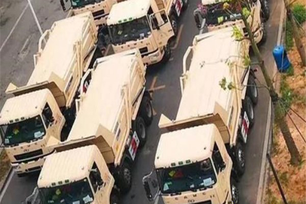 在深圳,上千輛搭載濰柴發動機的全新渣土車集中辦理掛牌上路
