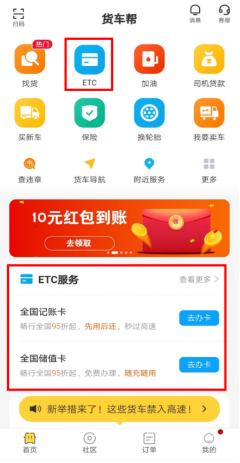 無論是ETC儲值卡老用戶,還是想辦理記賬卡的新用戶,均可在貨車幫app、運滿滿app上申請辦理。工作人員將聯系您,并將OBU裝置郵寄到你手中,擋風玻璃簡單一貼,激活即可使用,簡單方便。