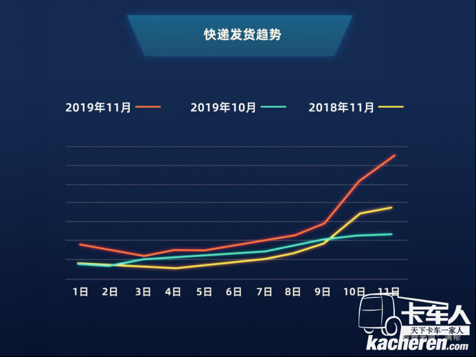 “雙十一”全民狂歡,共同參與了一項數千億的大項目。奮戰“雙十一”,和消費者、電商同樣無眠的,還有卡車司機、快遞員,以及在運輸、倉儲上面臨極大考驗的快遞公司。而在快遞公司的背后,有滿幫這樣的運力平臺“消化”溢出訂單,平臺上集結的數百萬社會運力時刻準備著承運包裹,助力消費者更快“收貨”。滿幫大數據顯示,2019年“雙十一”當天,全國快遞類貨運發貨量是10月11日的3倍,較11月10日上漲28%。