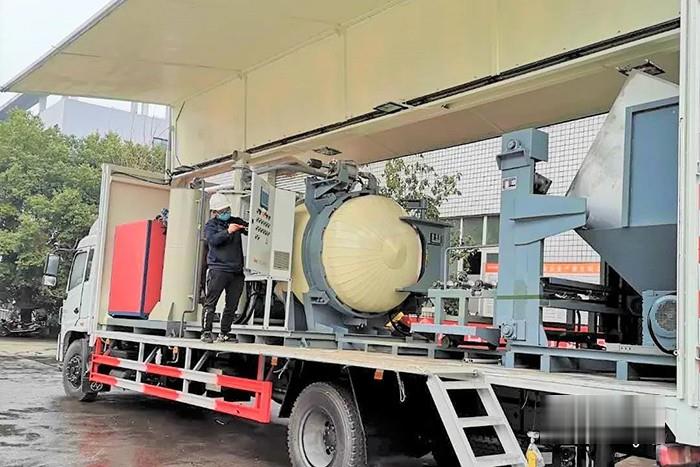 該車型上裝系統也不容小覷,搭載的是智得熱工多年來的“匠心之作”——醫療廢物高溫蒸汽處理站。該處理站包括高溫蒸汽處理單元、提升單元及破碎單元等,醫療廢物處置后的滅菌率達99.9999%,有效解決抗疫醫療戰線的“后顧之憂”。