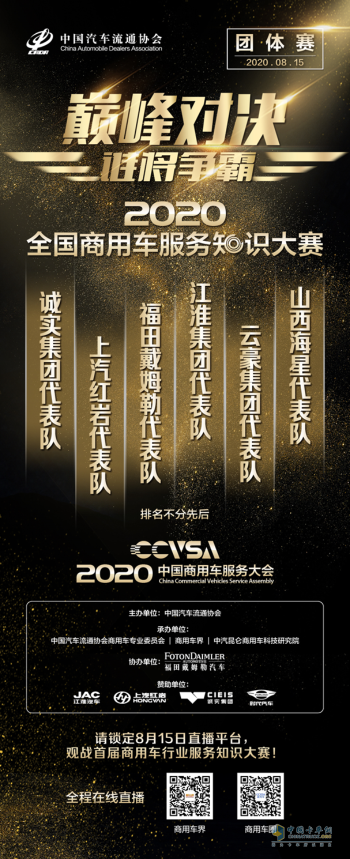 2020中國商用車服務大會倒計時15天,中國汽車流通協會邀您云觀賞大會精彩演講和論壇, 觀摩6大戰隊首次全國商用車服務知識大賽!