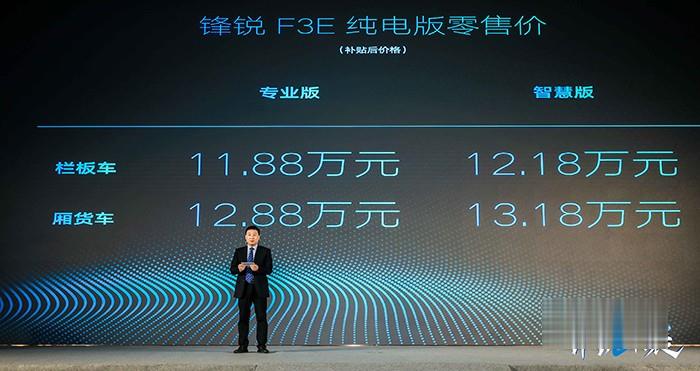 基于乘用車研發經驗,鋒銳小卡以高品質、高顏值、大承載和大貨箱為產品特點,打破了傳統小卡的刻板印象。3.5噸純電版鋒銳小卡,補貼后的市場零售價為11.88萬元~13.18萬元;3.5噸燃油版鋒銳小卡,市場零售價為4.66萬元~5.28萬元,兩個版本均能享受豐厚的訂車優惠及金融政策。