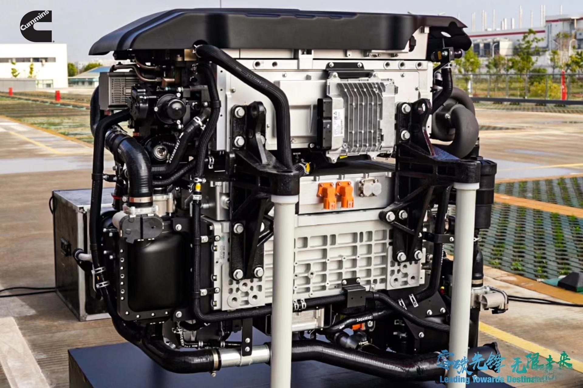在研發中心新基地開業現場,從亮相的康明斯全系低碳、零碳動力解決方案,就可以領略到康明斯近些年在降碳層面上的努力:全新高效柴油發動機、國六天然氣清潔動力,與生物柴油和加氫植物油(HVO)等更清潔燃料兼容的多燃料發動機平臺、前瞻大功率燃料電池HD240、氫內燃機15H及配裝15H的零碳概念重卡、低碳環保的康明斯一體化動力鏈產品(15N天然氣發動機+贏動AMT+美馳車橋)...