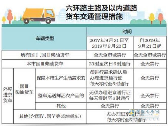 2017年9月21日起執行,兩年后所有國Ⅲ柴油貨車全天禁行