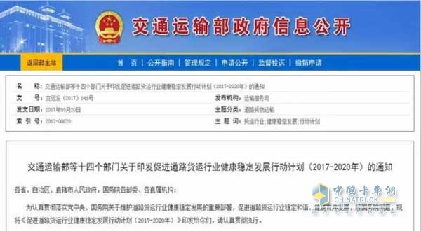 《促進道路貨運行業健康穩定發展行動計劃(2017-2020年)》發布