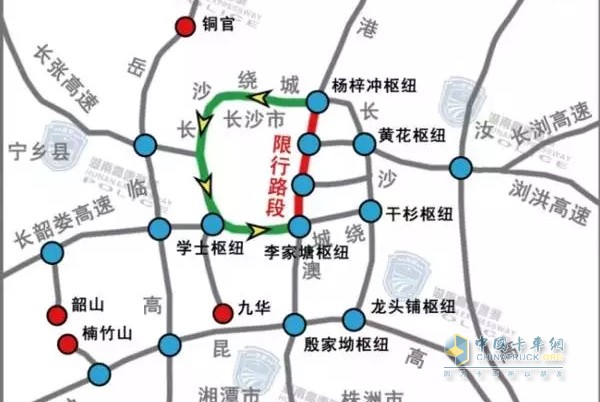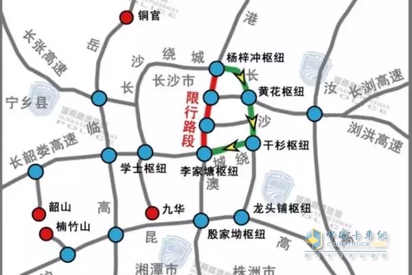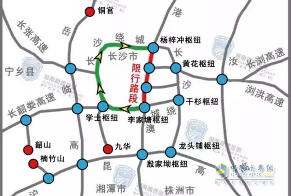 為加強國慶節假日期間高速公路交通安全管理,根據《中華人民共和國道路交通安全法》第三十九條之規定,決定在2017年10月1日8時-2017年10月8日20時,限制貨車在G4京港澳高速公路長沙段通行。具體路段為G4京港澳高速公路1484km(楊梓沖樞紐互通)至1509km(李家塘樞紐互通)路段,沿線收費站禁止貨車駛入。