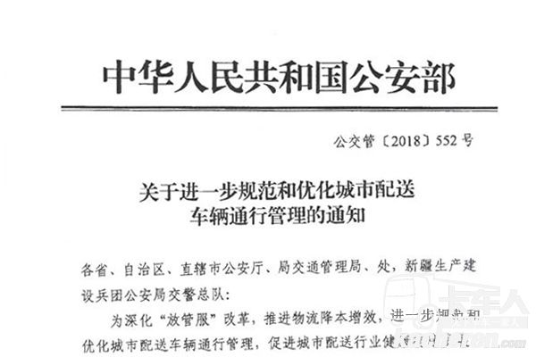2018年10月29日獲悉,公安部發(fā)出《關(guān)于進(jìn)一步規(guī)范和優(yōu)化城市配送車輛通行管理的通知》。