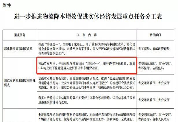 2017年11月1日河北省率先取消4.5噸及以下車輛《營運證》、《從業資格證》。