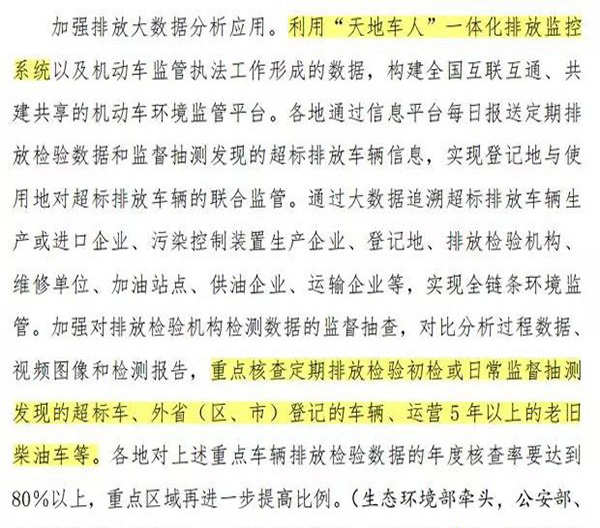 利用機動車道路遙感監測、排放檢驗機構聯網、重型柴油車遠程排放監控,以及路檢路查和入戶監督抽測,對柴油車開展全天候、全方位的排放監控。