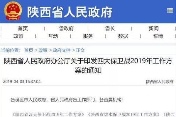 2019年4月3日,陜西省政府發(fā)布了關(guān)于印發(fā)四大保衛(wèi)戰(zhàn)2019年工作方案的通知。
