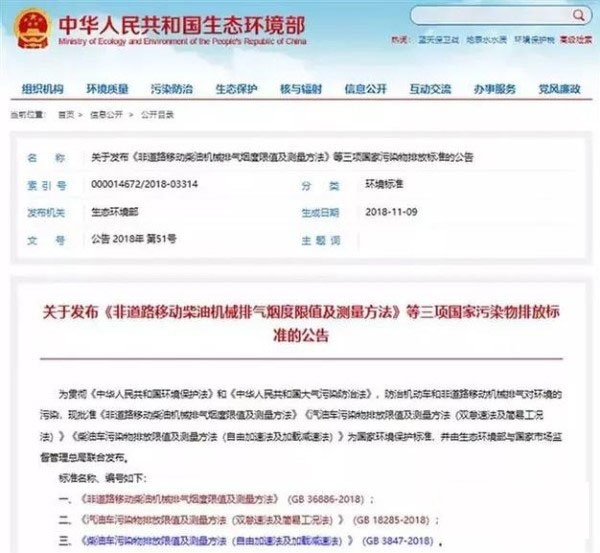 去年11月,國家生態環境部發布了《柴油車污染物排放限值及測量方法(自由加速法及加載減速法)》,并將于2019年5月1日起正式實施。