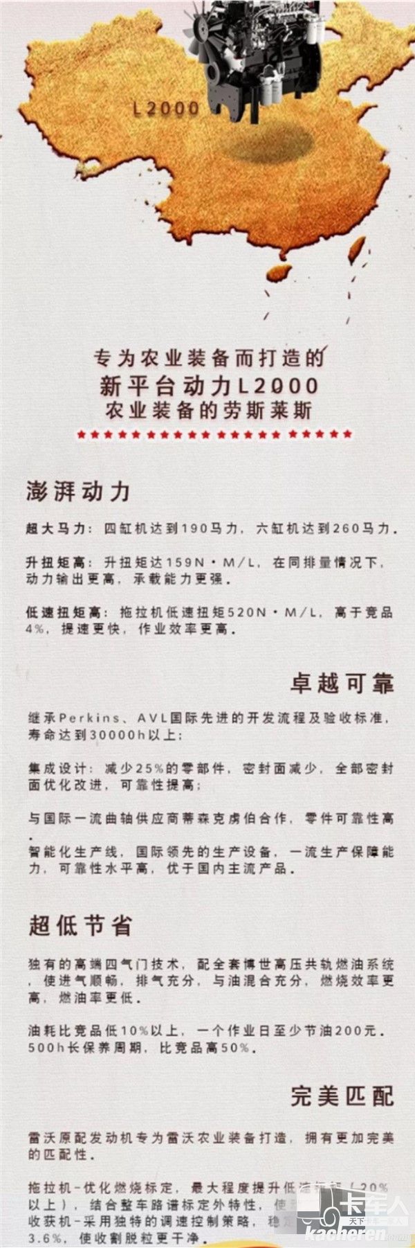 “歐洲科技 一脈傳承”的雷沃發(fā)動(dòng)機(jī)致力成為世界級動(dòng)力供應(yīng)商,幾年來已有約15萬臺雷沃發(fā)動(dòng)機(jī)產(chǎn)品成為汽車、發(fā)電機(jī)組、工程機(jī)械、農(nóng)機(jī)的首選動(dòng)力,馳騁在祖國的大江南北和世界各地。