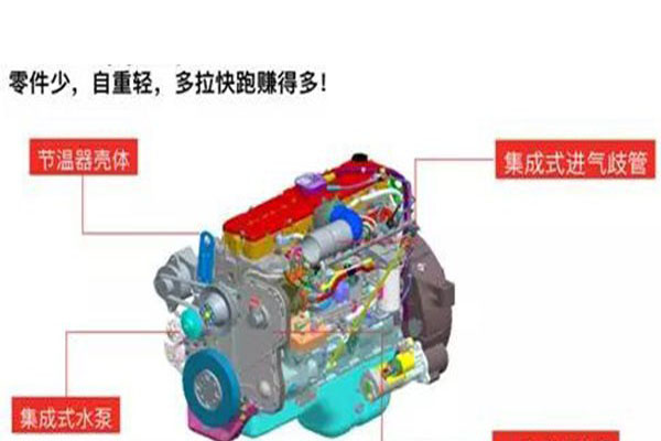 自重輕,發動機自重僅704公斤,較行業同類型發動機輕約170公斤,匹配專業輕量化底盤,整車更輕,多拉快跑,收益更高。