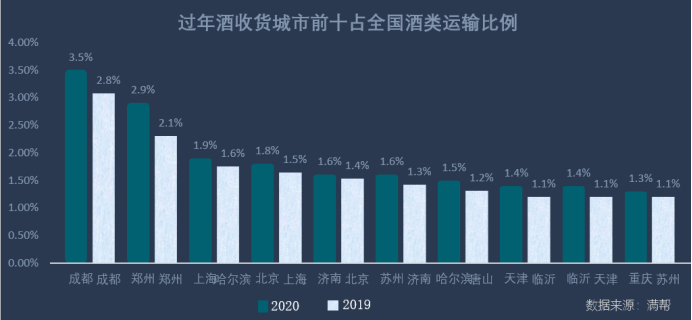 滿幫數(shù)據(jù):今年過年酒流向較去年更為集中,大城市流入量排名上升